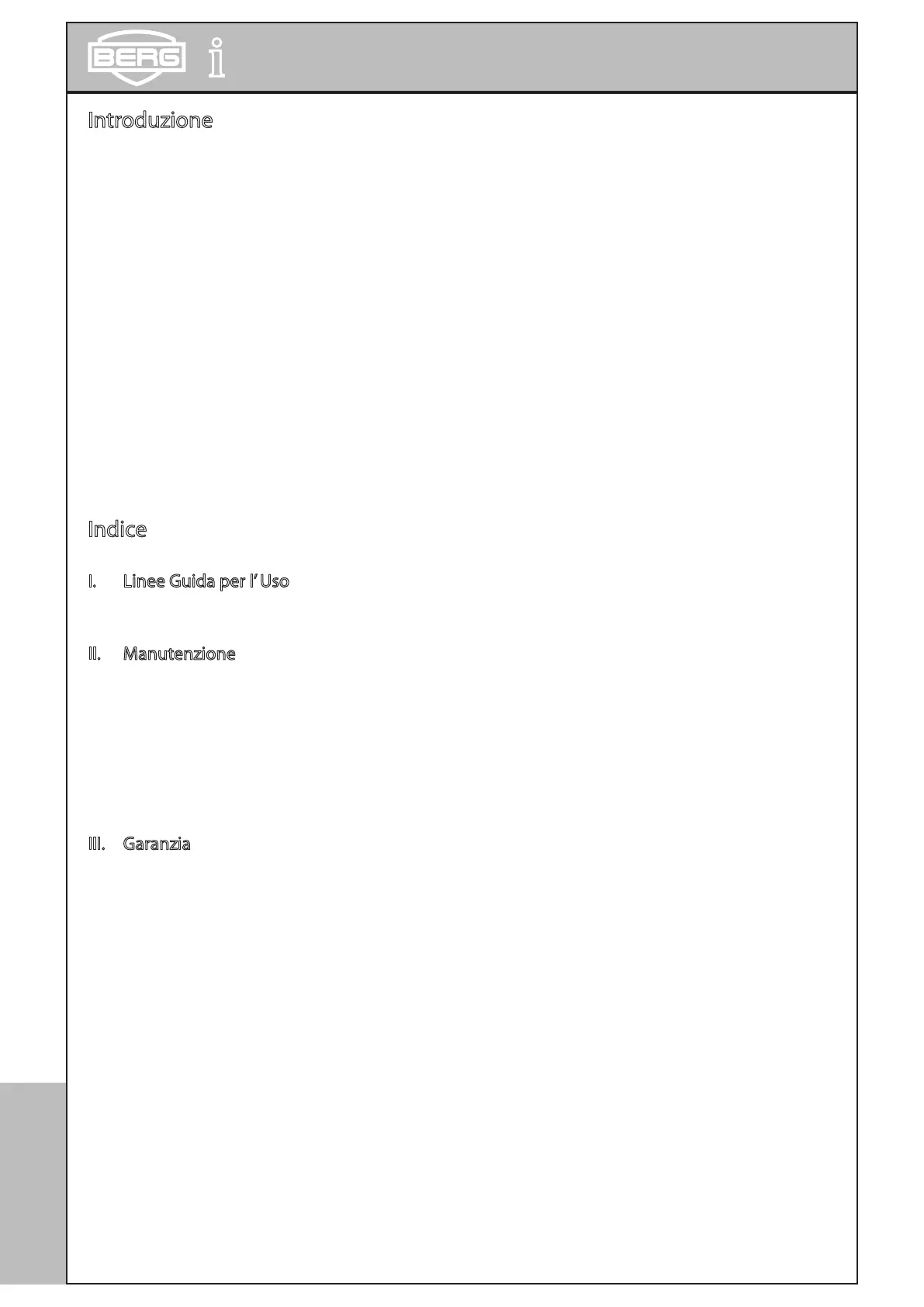 acquistato un prodotto BERG, Lei ha scelto un oggetto che Le offrirà anni di piacere, un bene prezioso a cui riservare amorevole