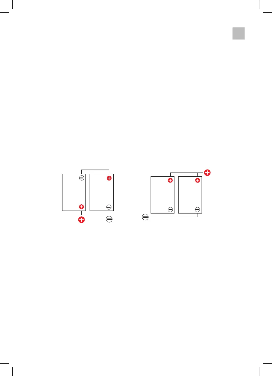 • Con il collegamento in parallelo (max. 4 batterie) la capacità aumenta, la tensione non cambia.