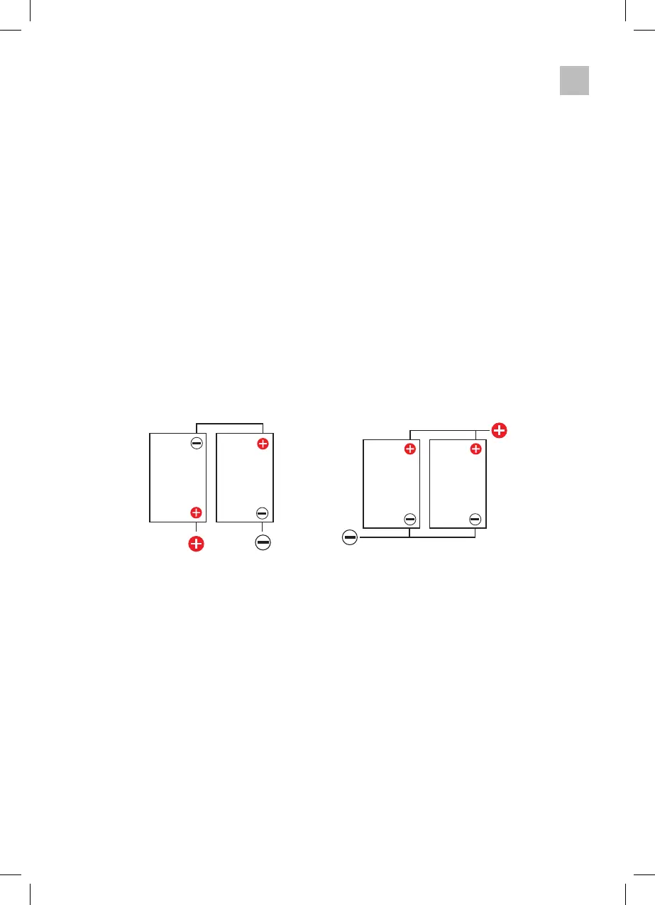 • Bei Reihenschaltung (max. 4 Batterien) erhöht sich die Spannung, die Kapazität erhöht sich