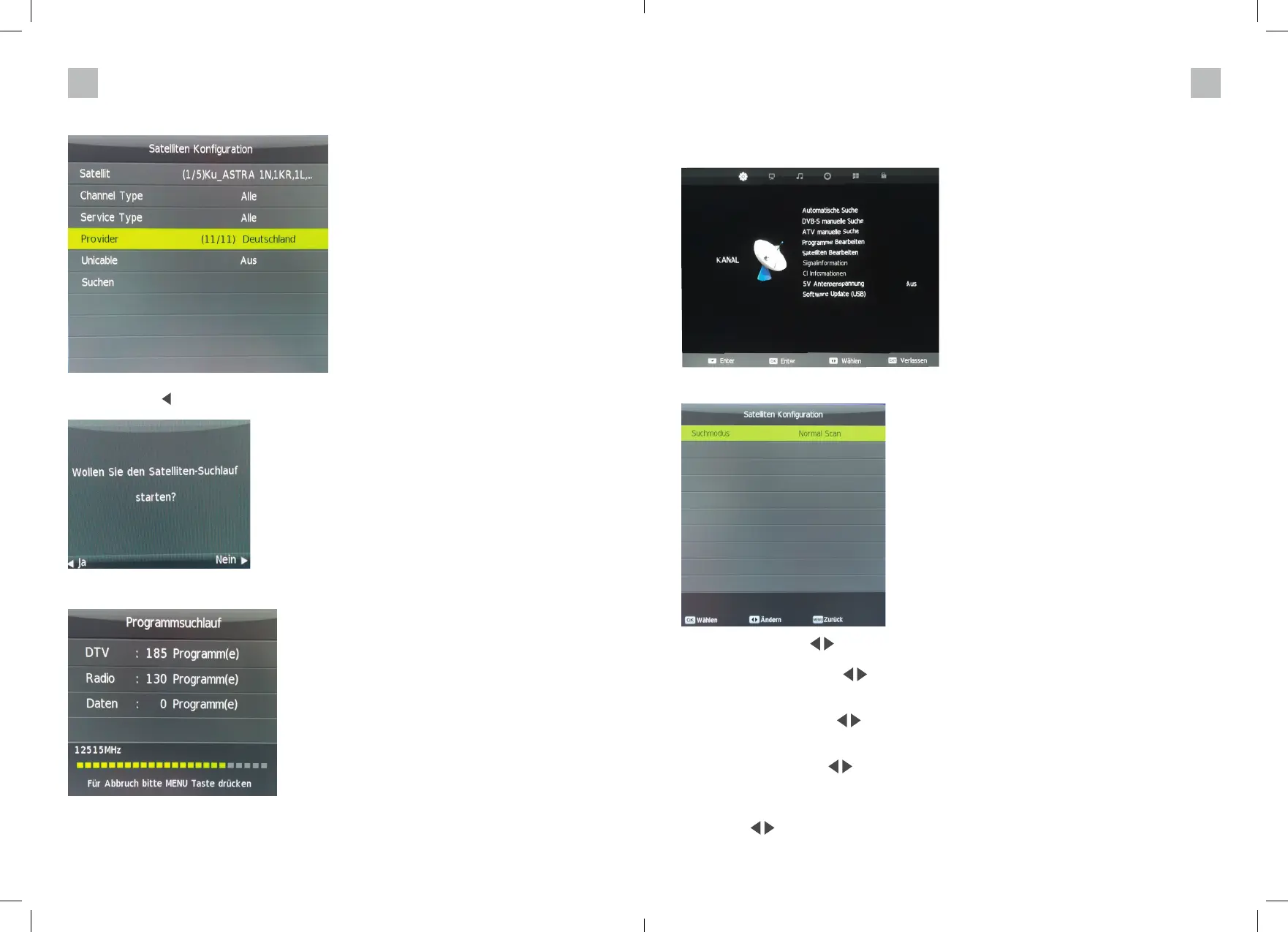 Satelliet: Kies met de toetsen de gewenste satelliet.