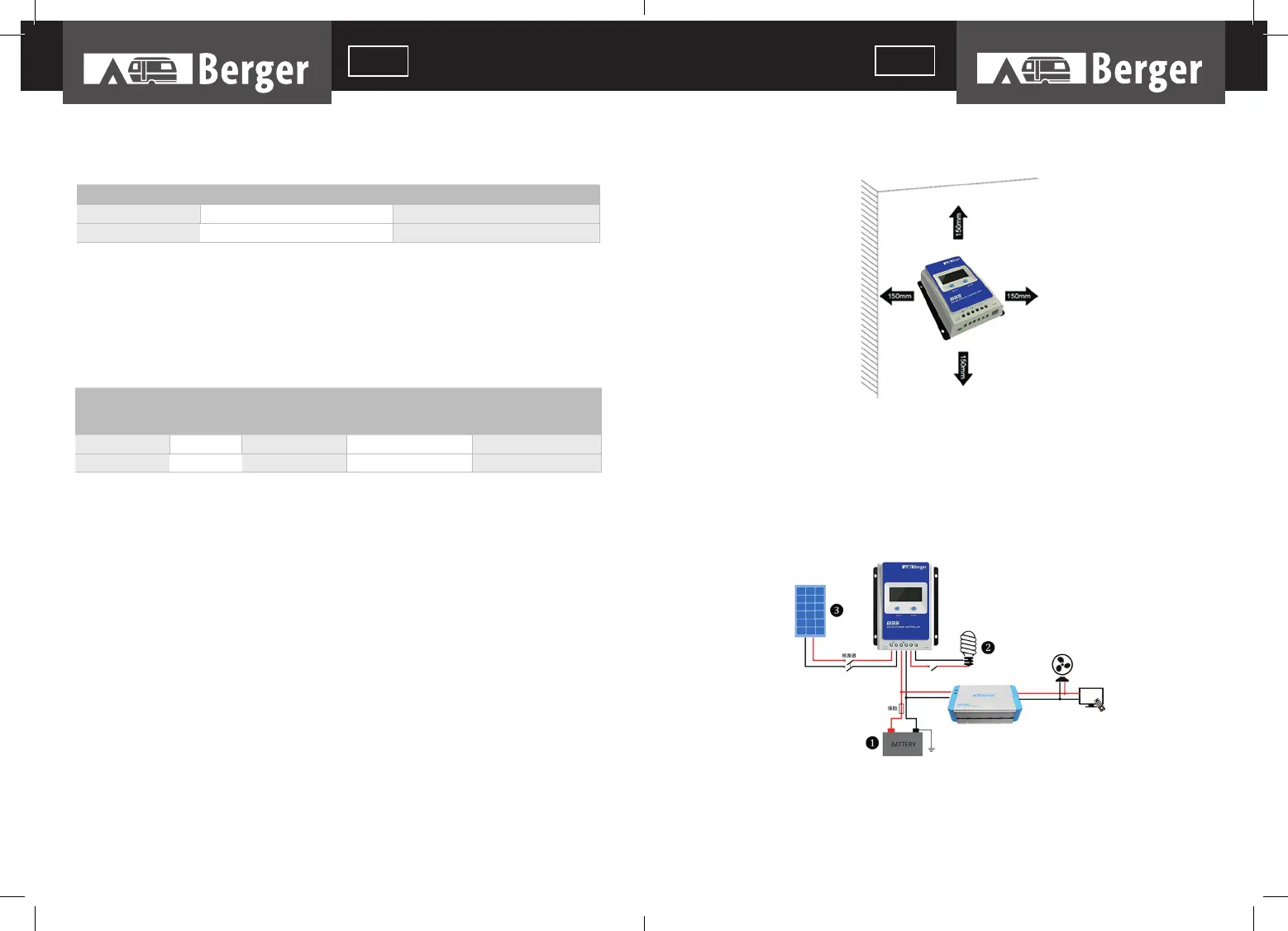 endroit bien ventilé par les refroidisseurs du régulateur avec un écart minimal de 150 mm