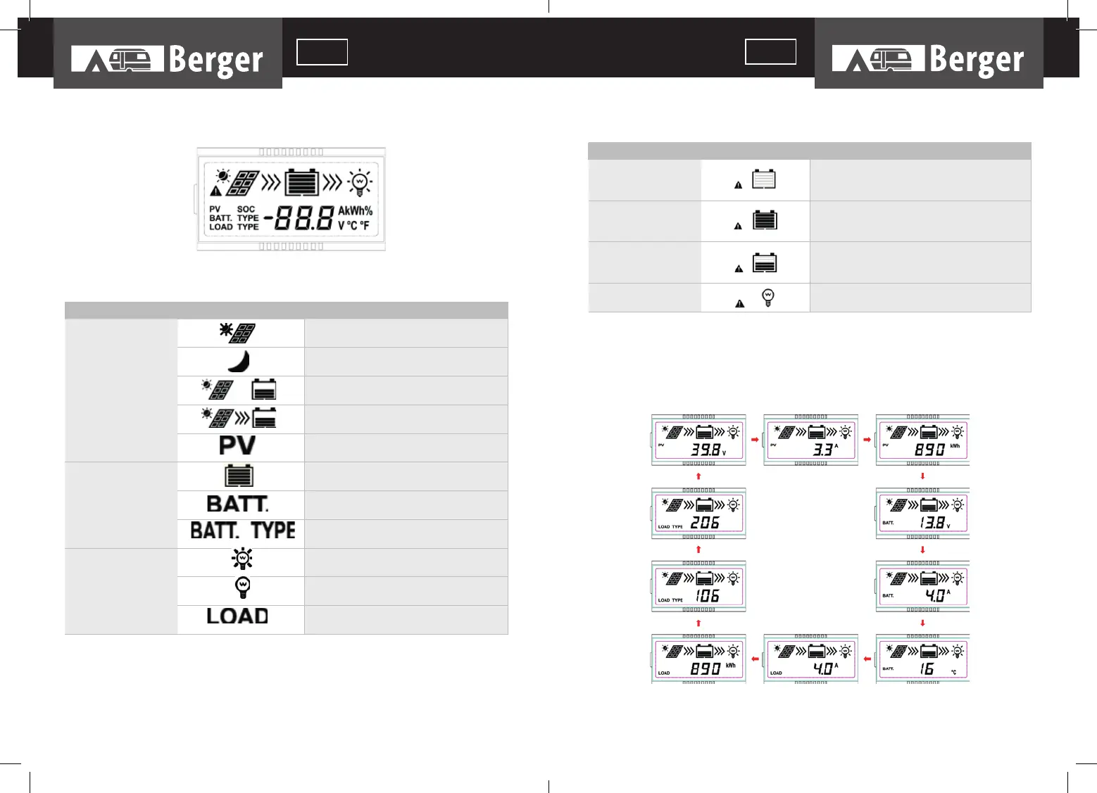 nominale, le régulateur éteint les charges automatiquement après 50 sec, 30 sec,10 sec
