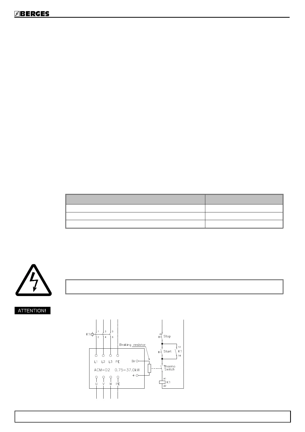 The braking resistor must be equipped with a temperature monitoring device which isolates the