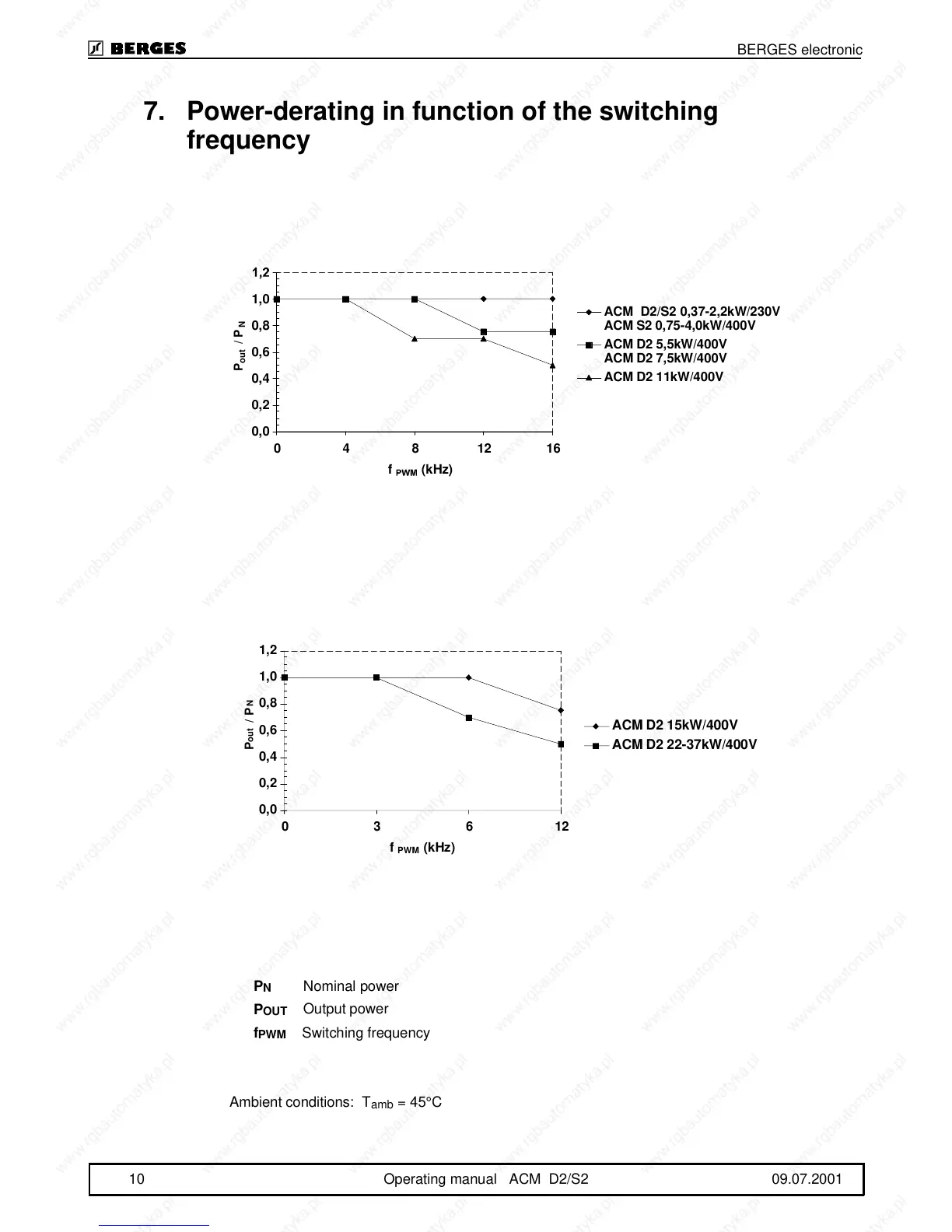 Berges ACM D2 - Derating and Dimensional Data; Power Derating vs. Switching Frequency