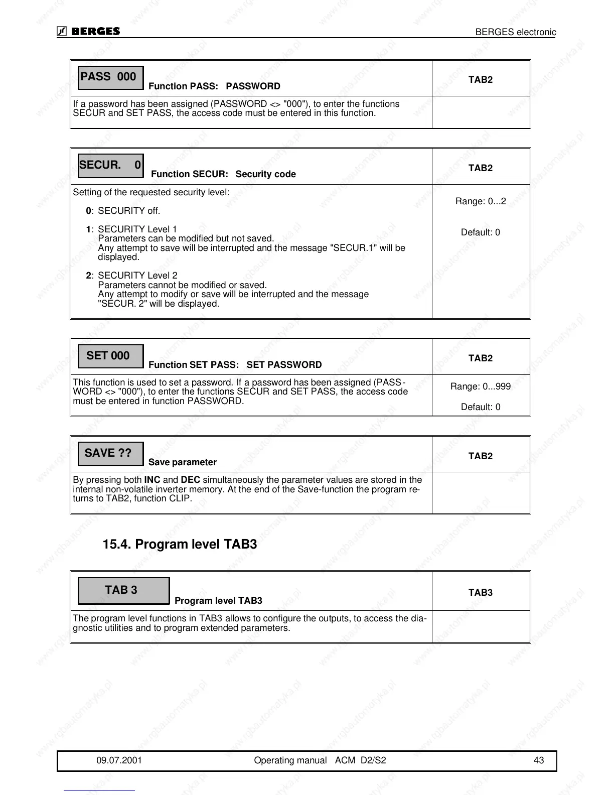 WORD <> "000"), to enter the functions SECUR and SET PASS, the access code