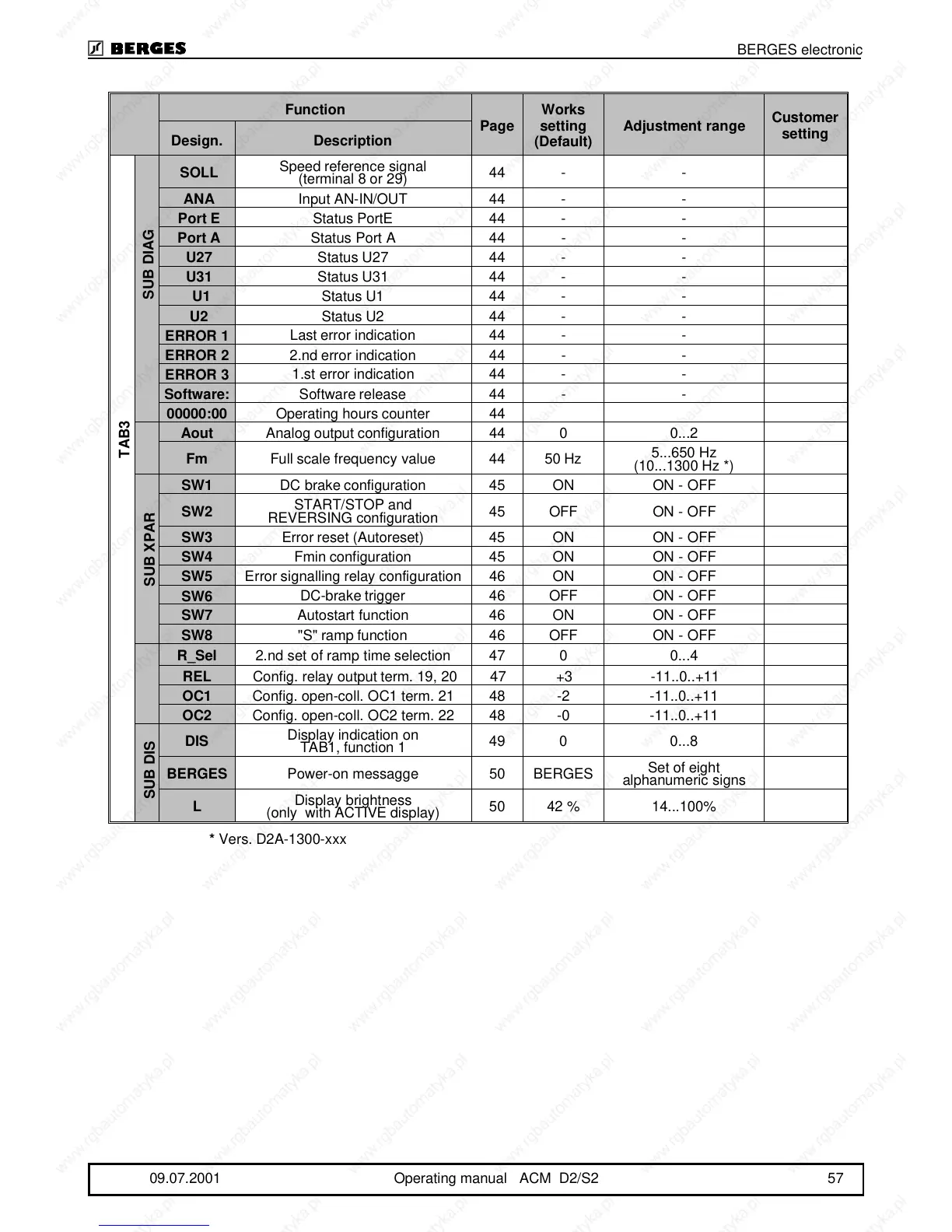 09.07.2001 Operating manual ACM D2/S2 57
