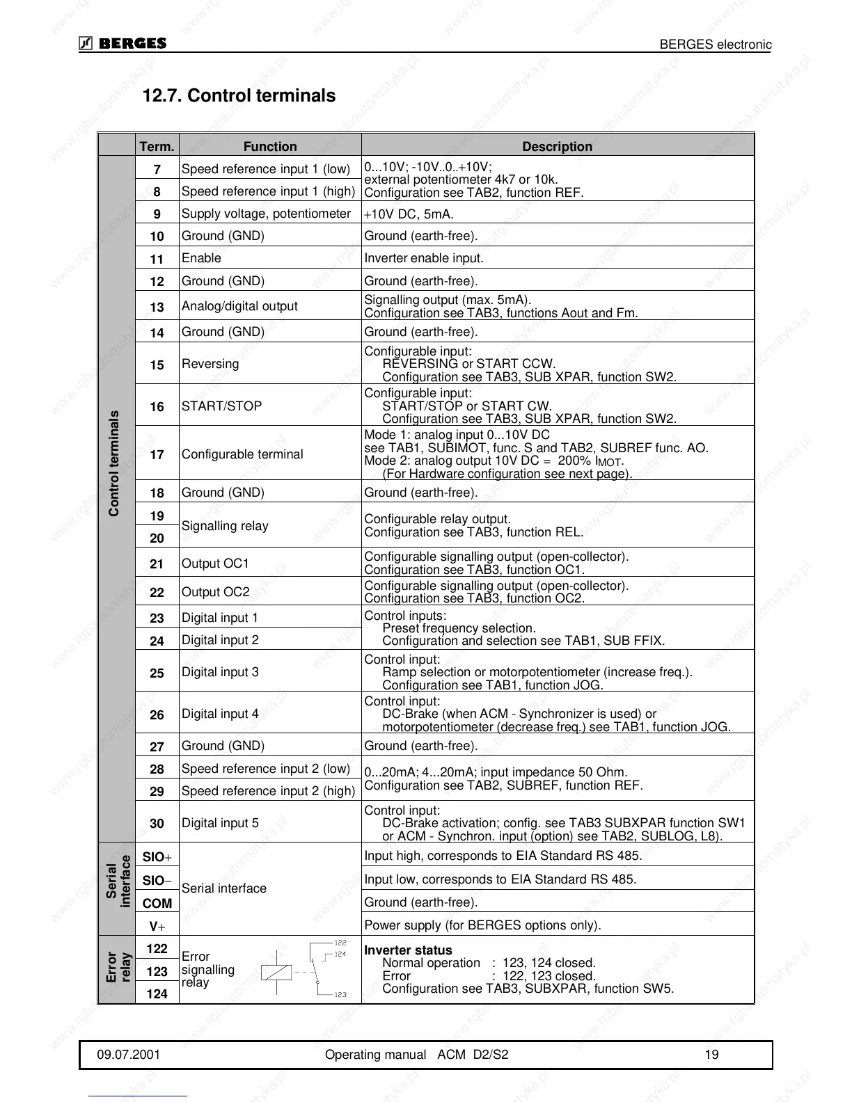 09.07.2001 Operating manual ACM D2/S2 19