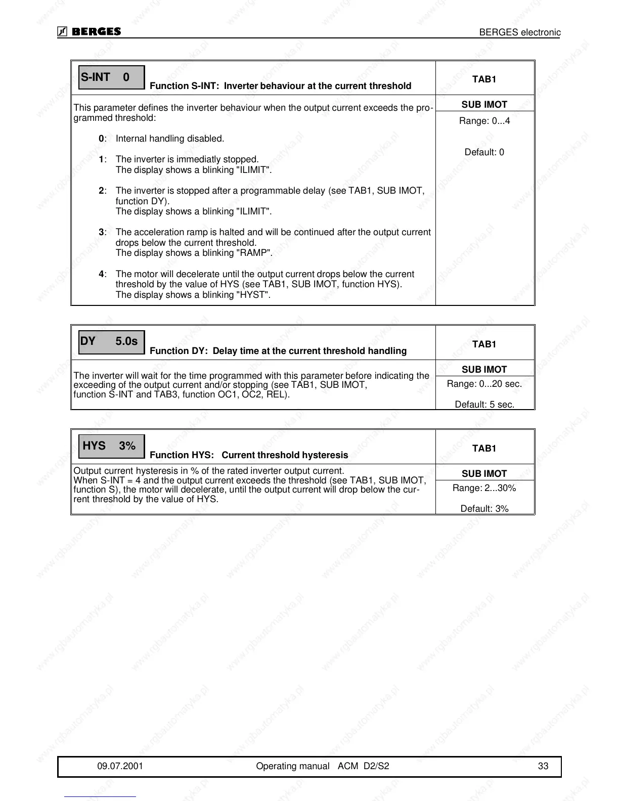 exceeding of the output current and/or stopping (see TAB1, SUB IMOT,