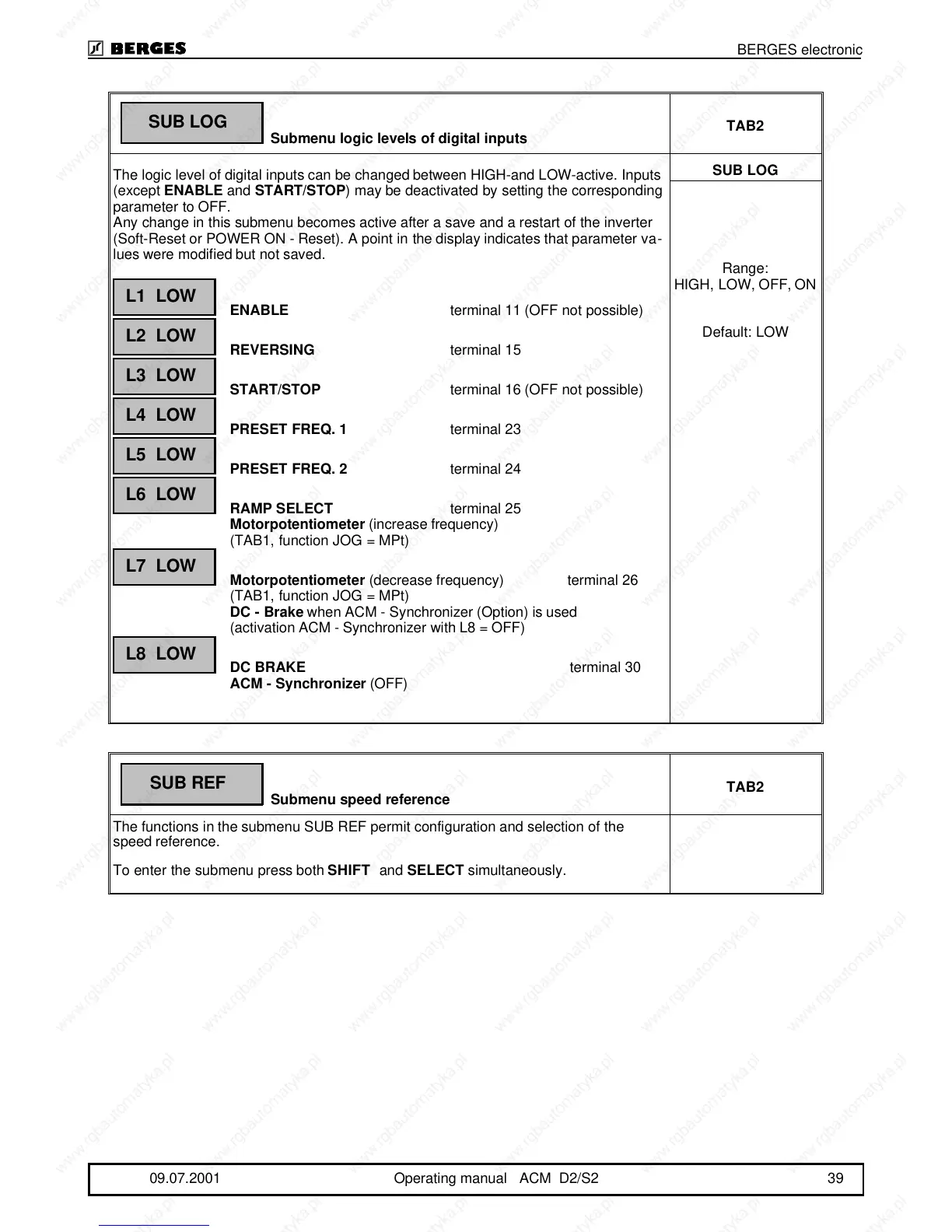 The logic level of digital inputs can be changed between HIGH-and LOW-active. Inputs