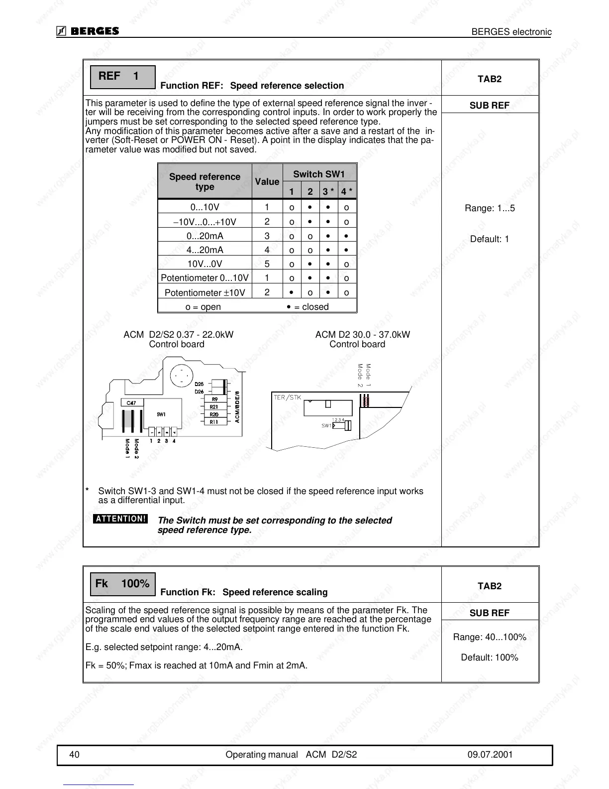 * Switch SW1-3 and SW1-4 must not be closed if the speed reference input works