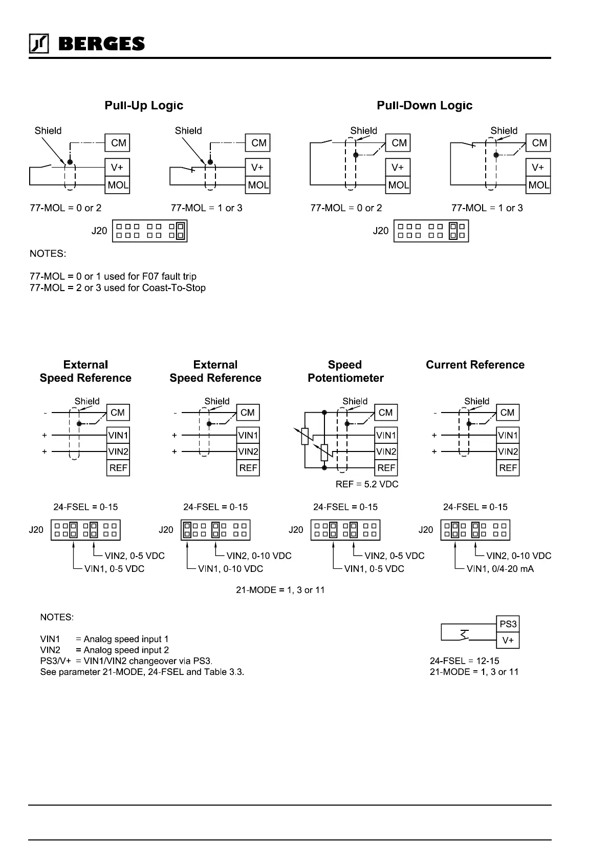 Berges ACP micro 3000 - MOL Terminal Connections; Analog Speed Input Connections (VIN1;VIN2)