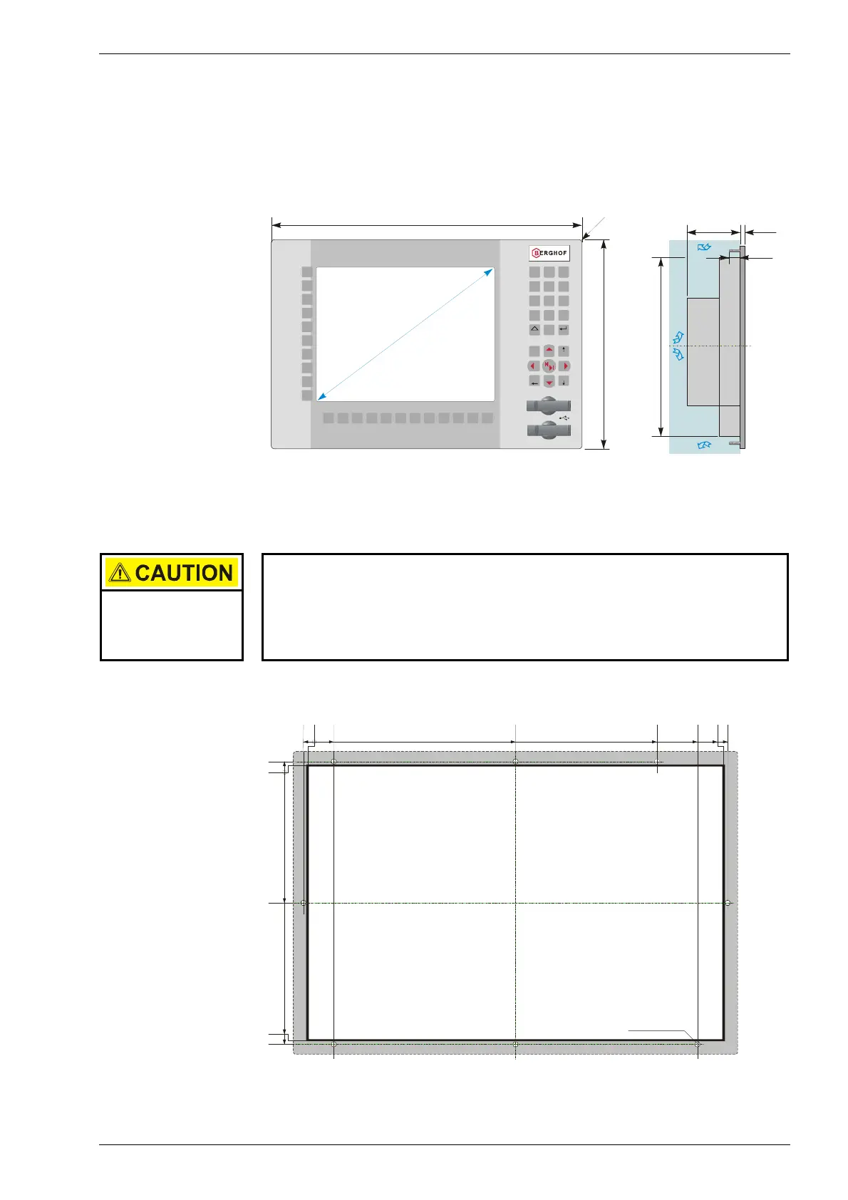 cutouts are identical for units equipped with either a keyboard or a touch panel.