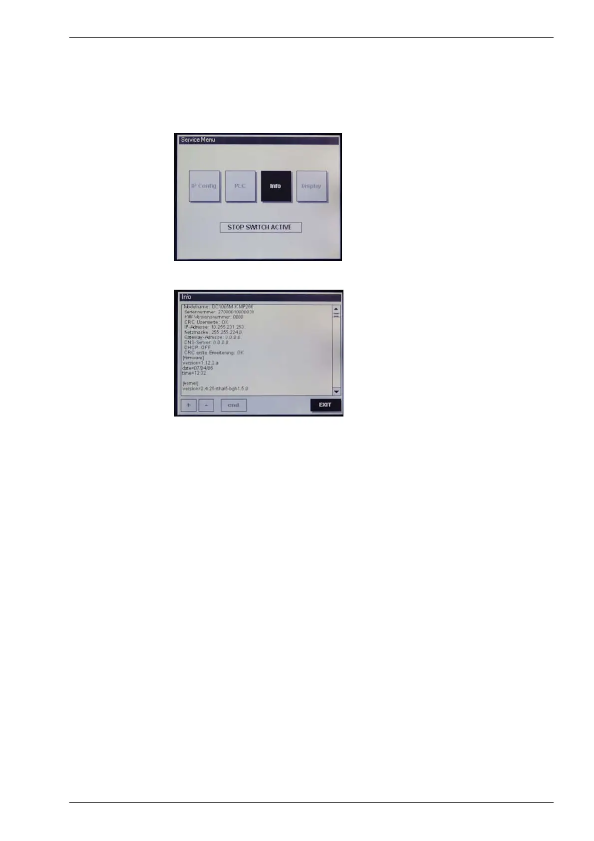 “INFO” service menu