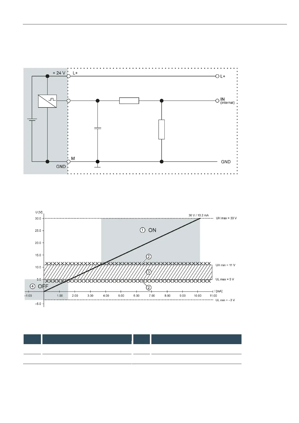 Fig. 23: Operating ranges of the digital inputs (type 1/3)