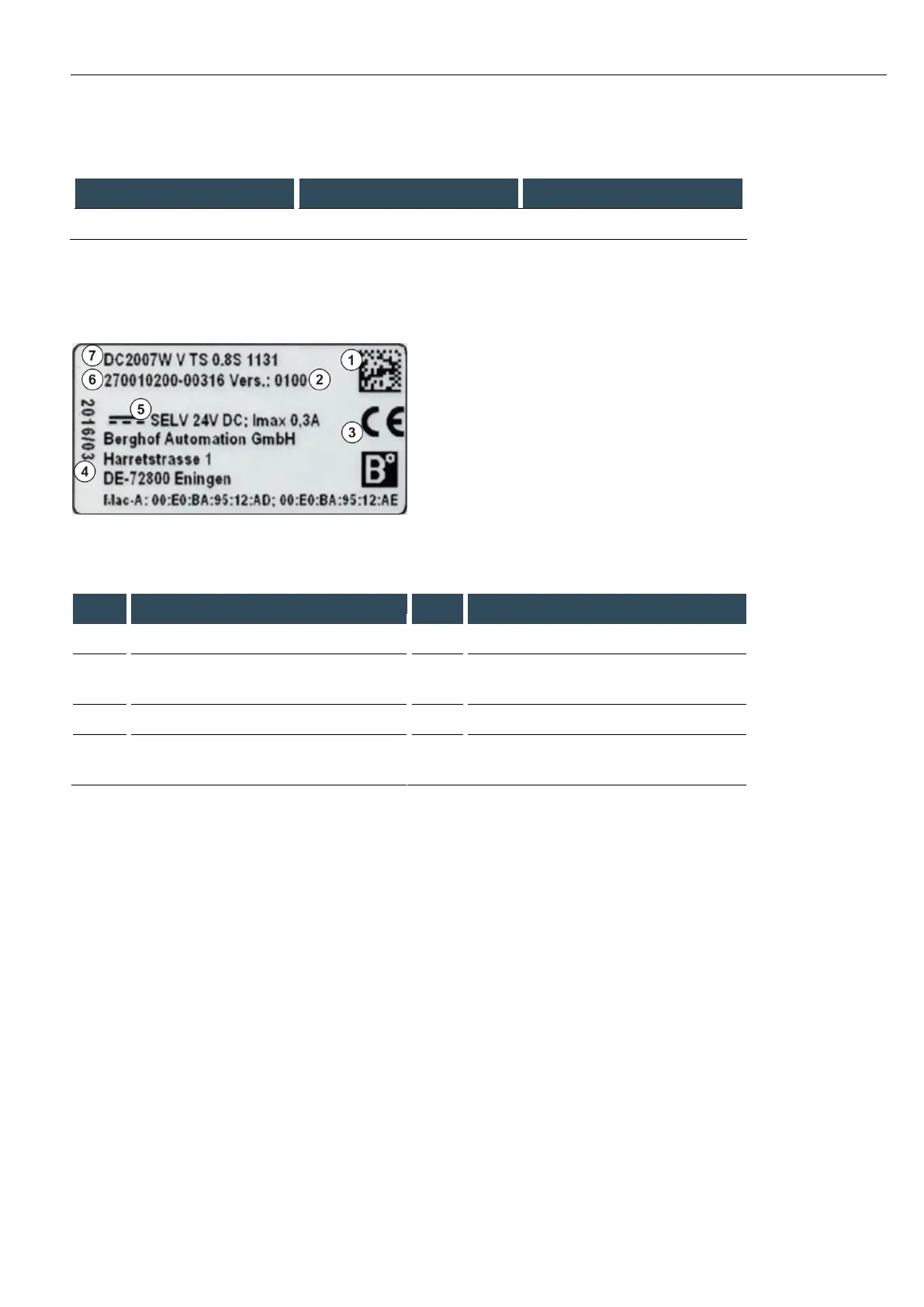 The „Version‟ field (delivered version) specifies the ex works condition of the module.