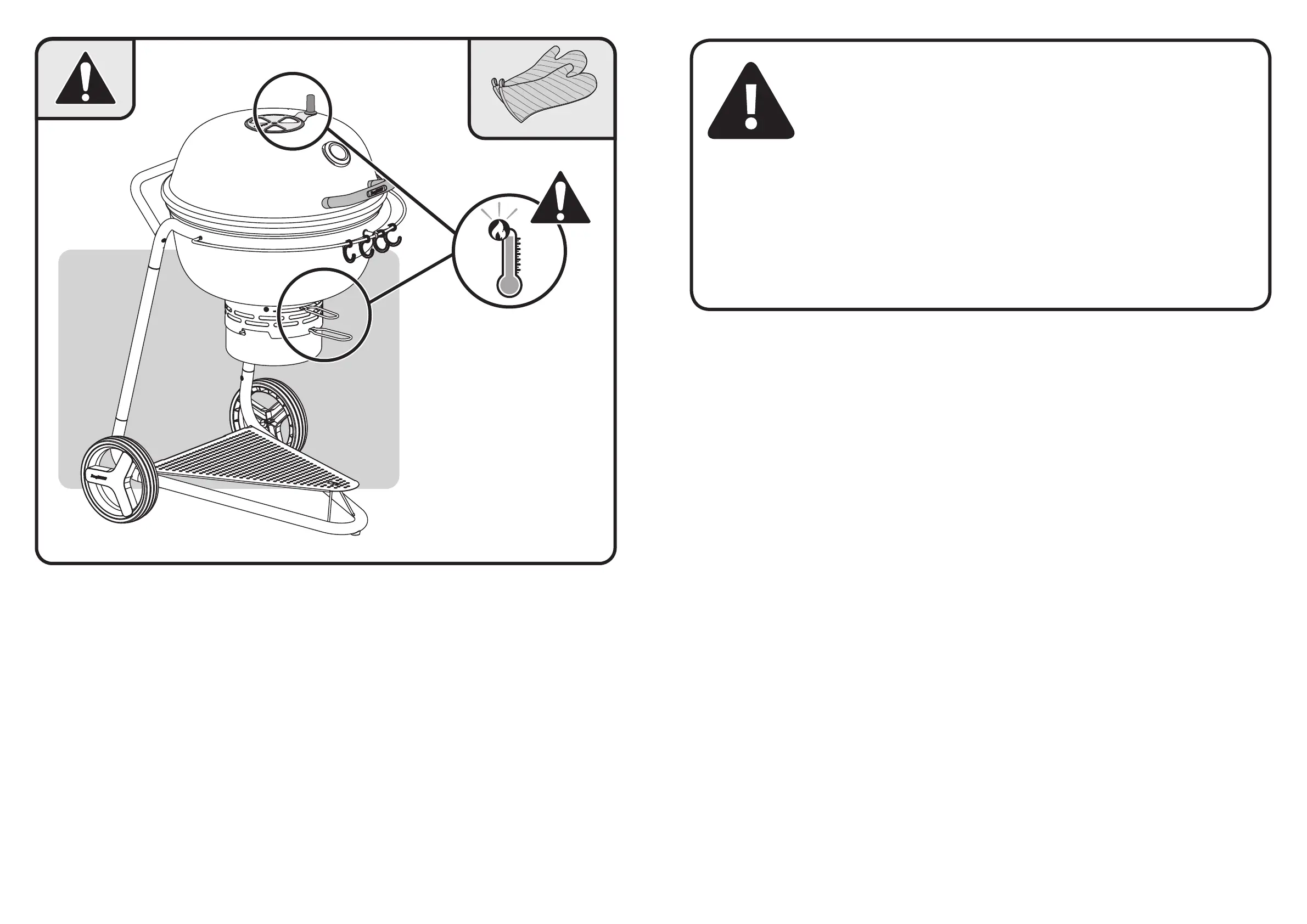 PLACE THE GRILL OUTDOORS ON A HARD, NONCOMBUSTIBLE SURFACE AWAY