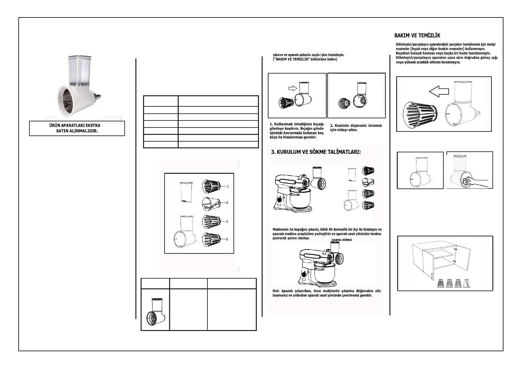 Dilimleyici/parçalayıcı aparatının Standlı Mikser üzerinde