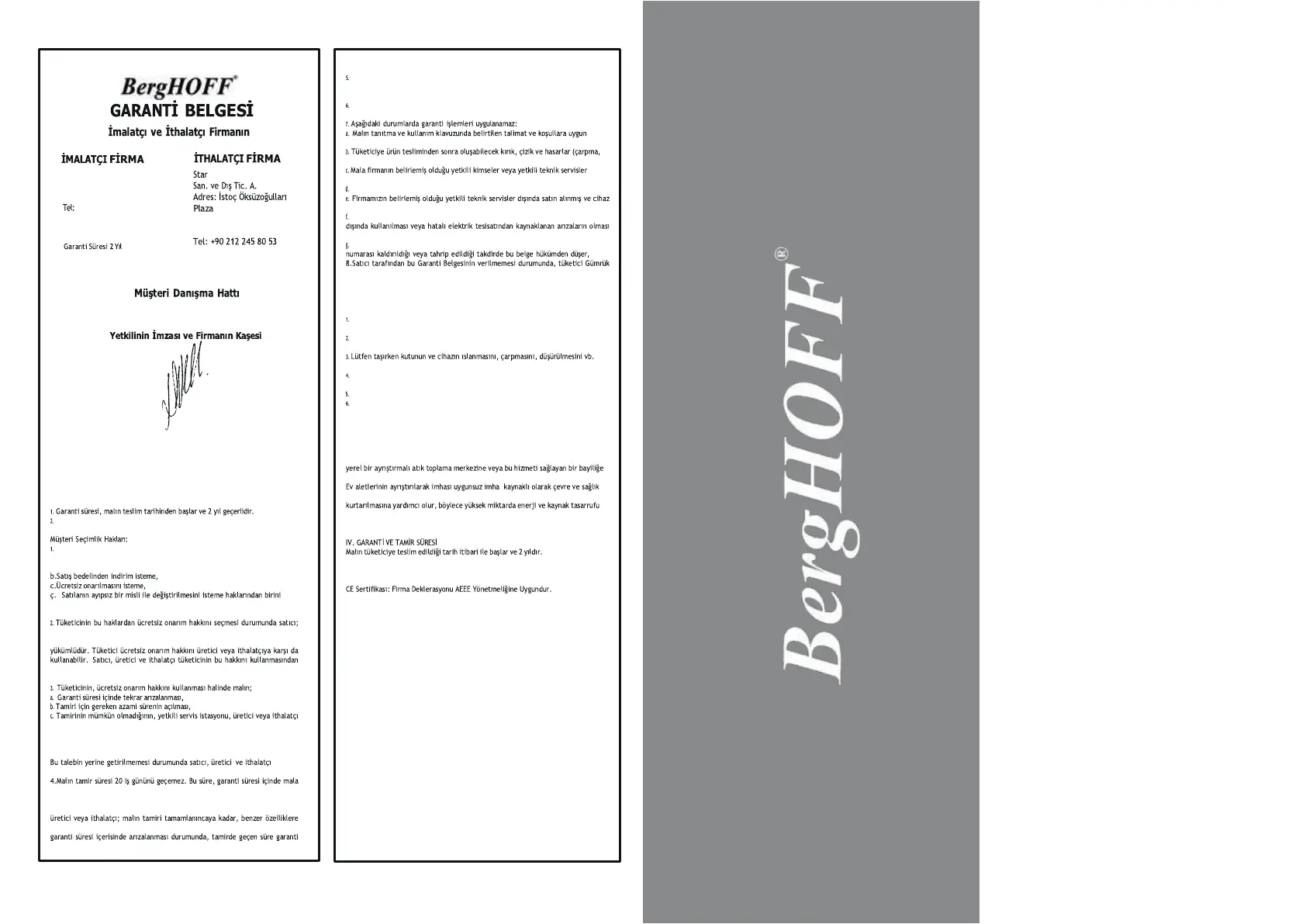 GARANTİ ARTLARI VE KULLANIM BİLGİLERİ: