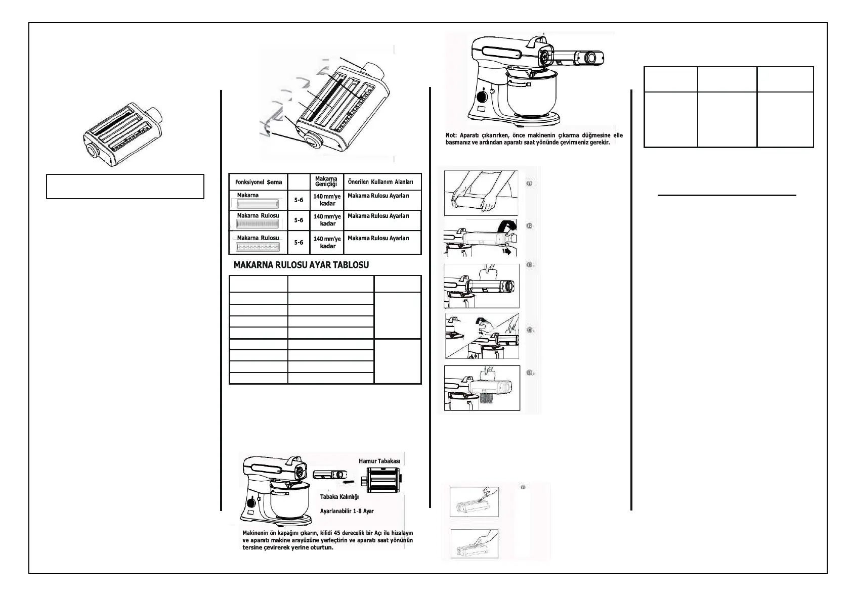 Lütfen makarna rulosu ve kesici aparatlarını metal aletlerle (bıçak