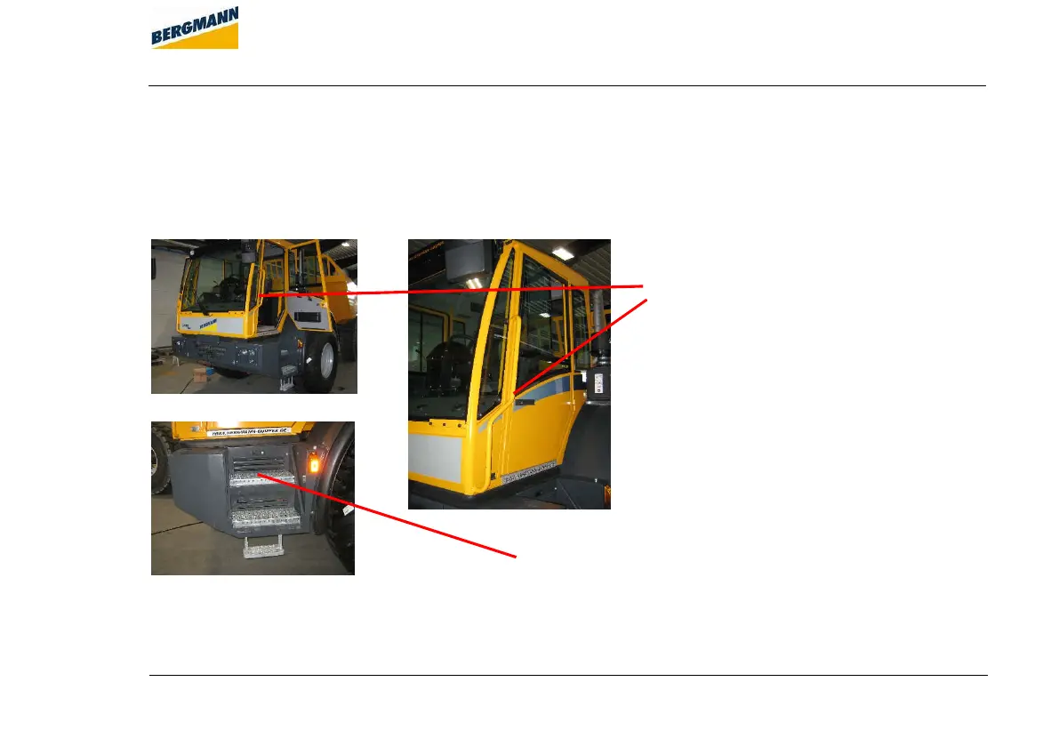 The operator stand of the 3012 PLUS dumper is accessed from the left (front). To access the cab, always