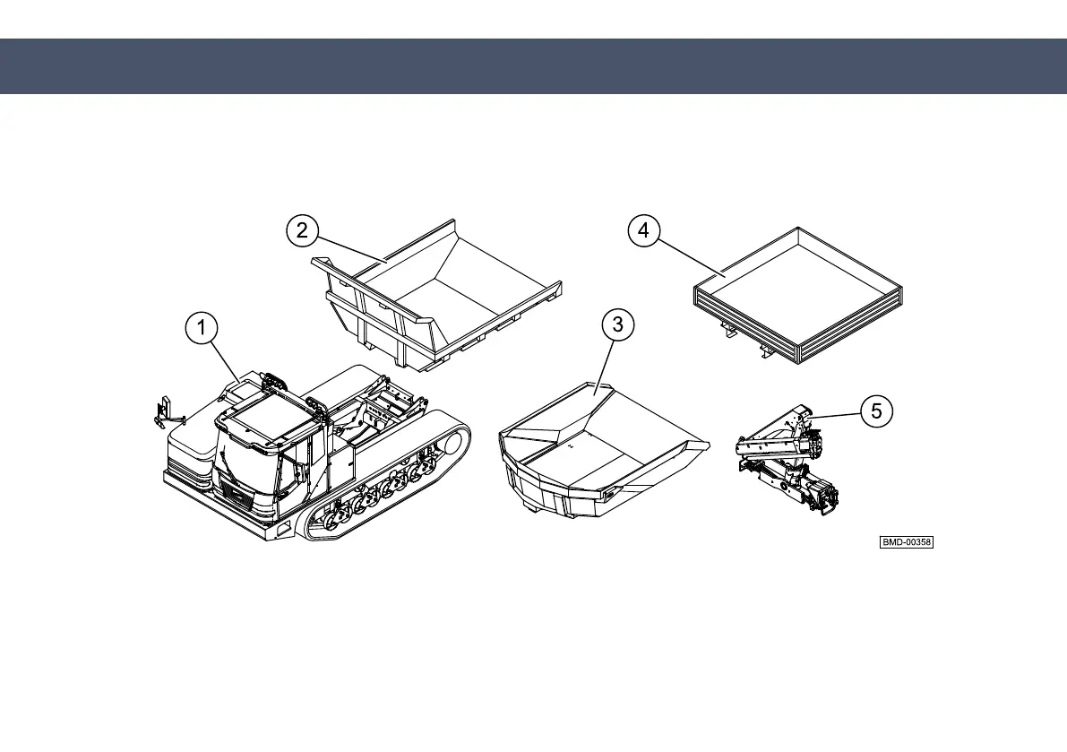 1 Basic machine 2 Rear tipping trough 3 Round tipping trough
