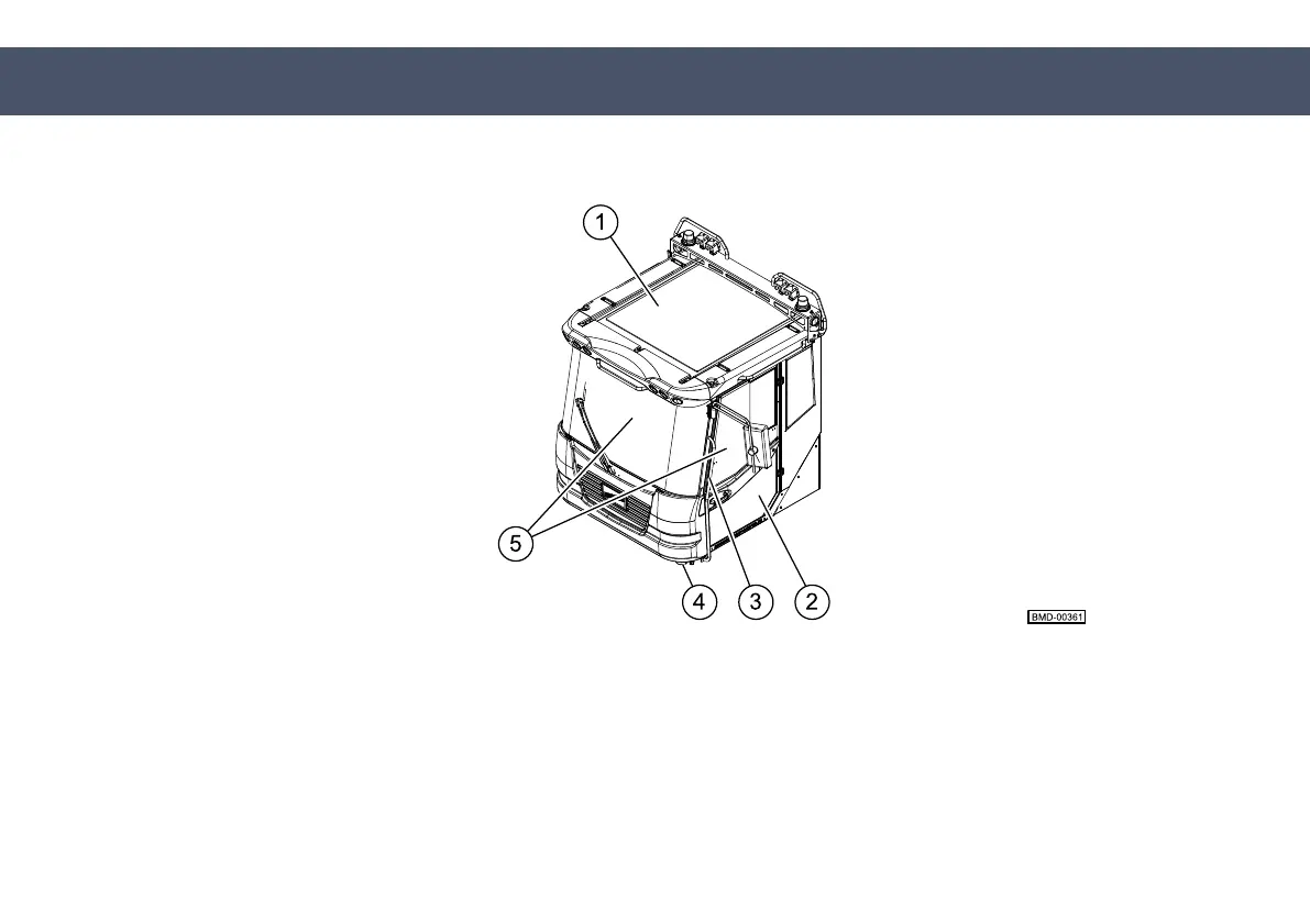 1 Operator's cab 2 Operator's door 3 Grab handle