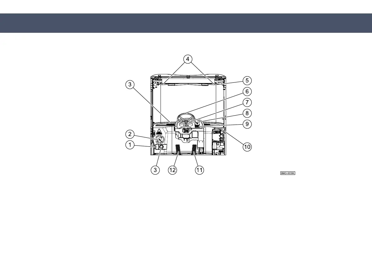 4 Loudspeaker preparations 5 Front roller blind 6 Steering wheel with steering knob