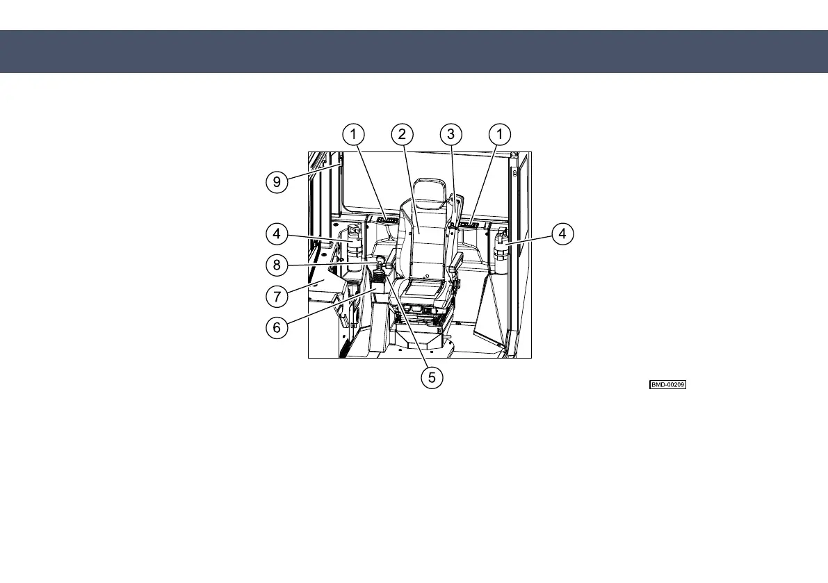 1 Ventilation nozzle 2 Operator's seat 3 Safety belt