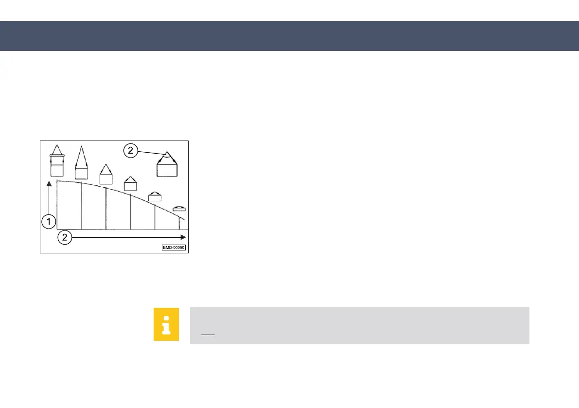 Attach the ropes so that the spread angle (2) between the sections of rope