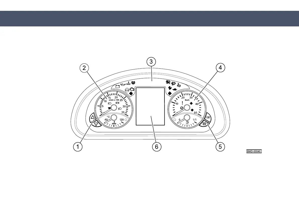 1 Buttons left 2 Instrument panel left 3 Instrument panel top