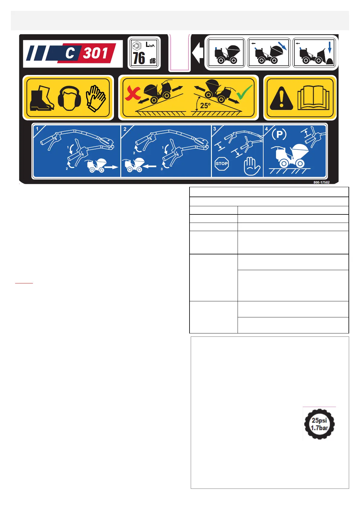 Reifendruck Der Reifendruck des C301 muss 25 psi