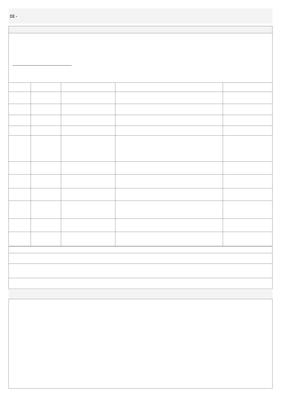 Tabelle sollte als Referenz benutzt werden, nachdem die oben erwähnten Kontrollen ausgeführt worden sind.