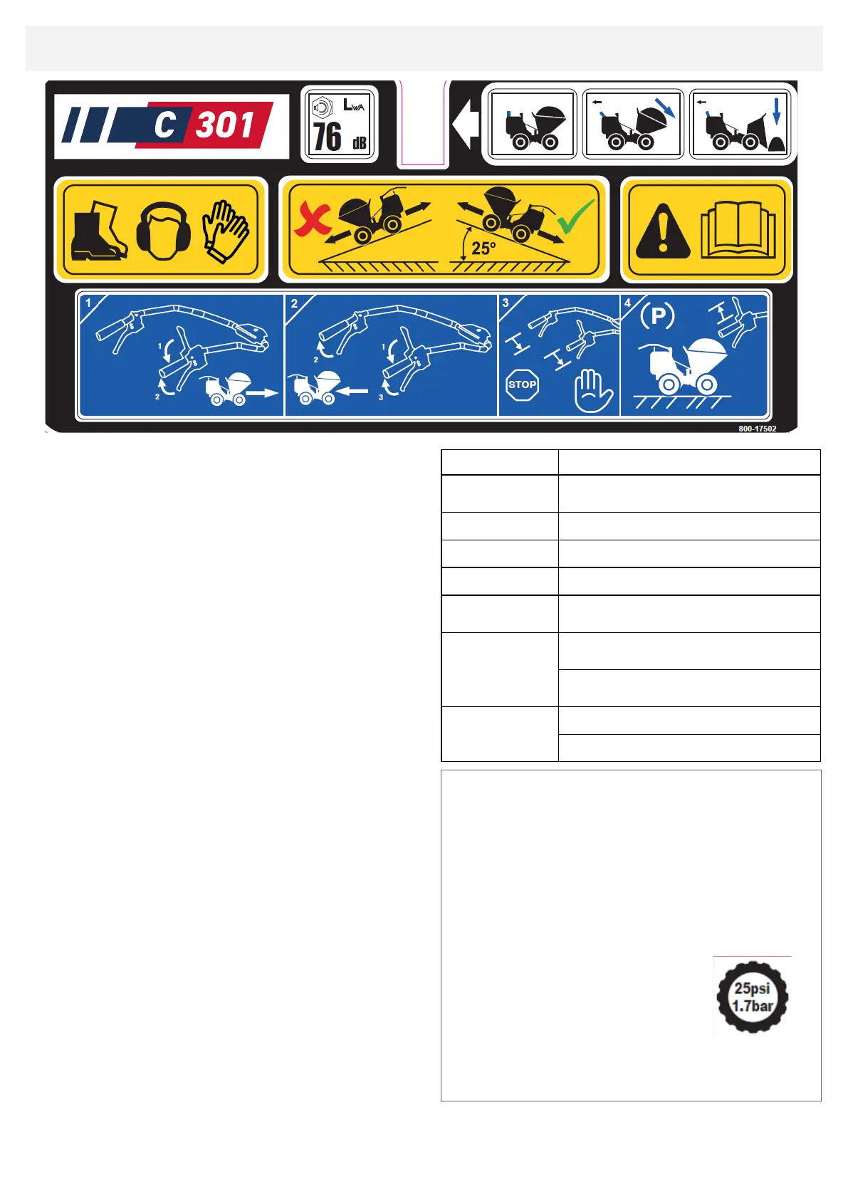 Ciśnienie oponCiśnienie opon maszyny C301 należy regularnie sprawdzać i