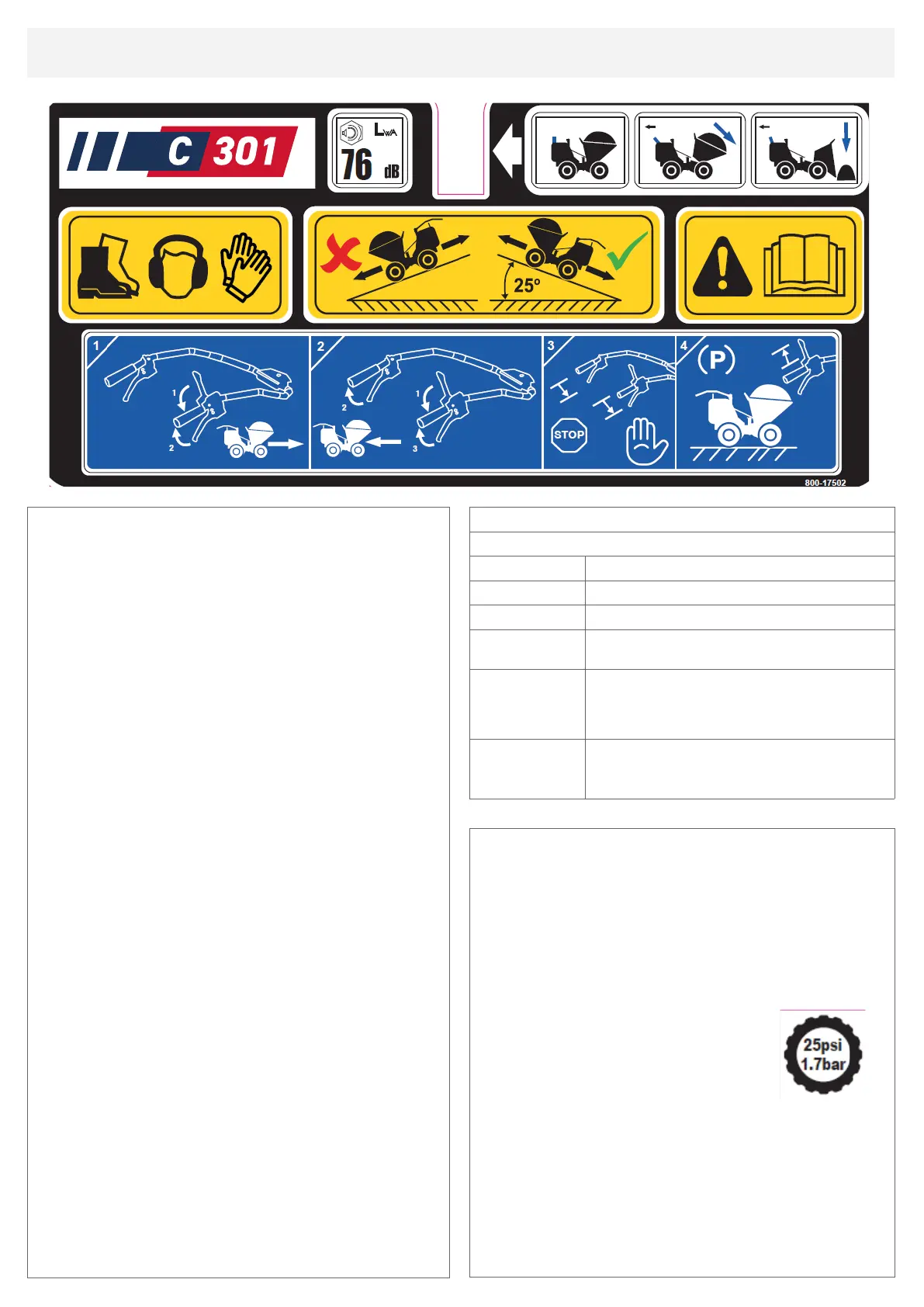 ON INCLINES Do not use the C301 on inclines / ramps above 25°