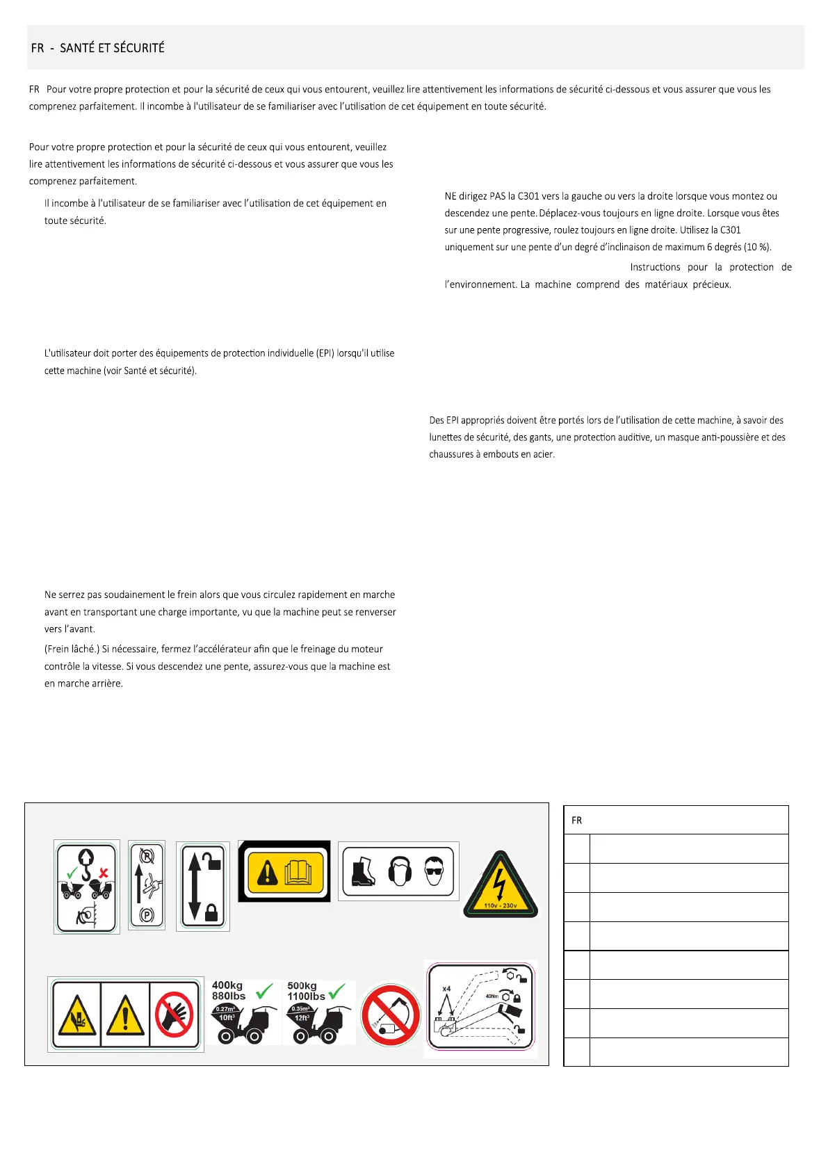 • N'ulisez pas la C301 pour le transport de personnes.