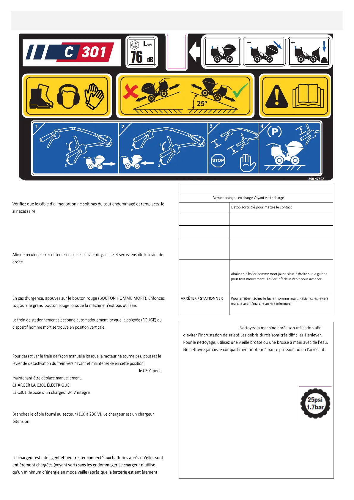 INSTRUCTIONS DE COMMANDE ET DE CHARGEMENT - C301 ÉLECTRIQUE / SERVICE & ENTRETIEN – ESSENCE - FR