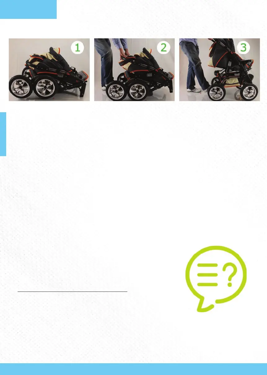 To unfold the pram, press your foot against the rear axle and pull the handlebar upward un l