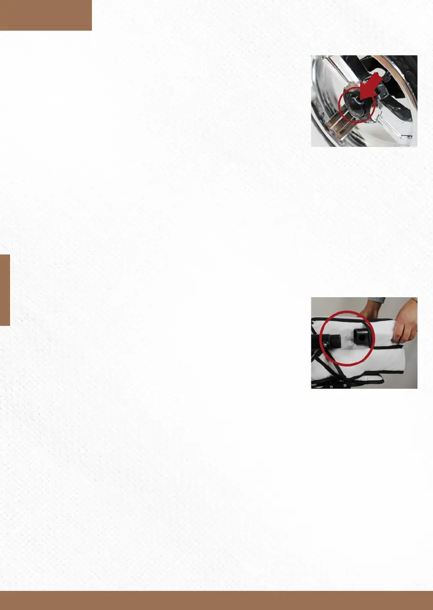 To aach the wheels, slide them forcefully over the respecve axle.