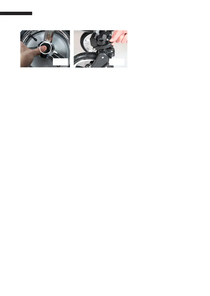 button on the rim (see Fig. 1) at the same time. The swivel wheels are lockable. To do this, position them parallel