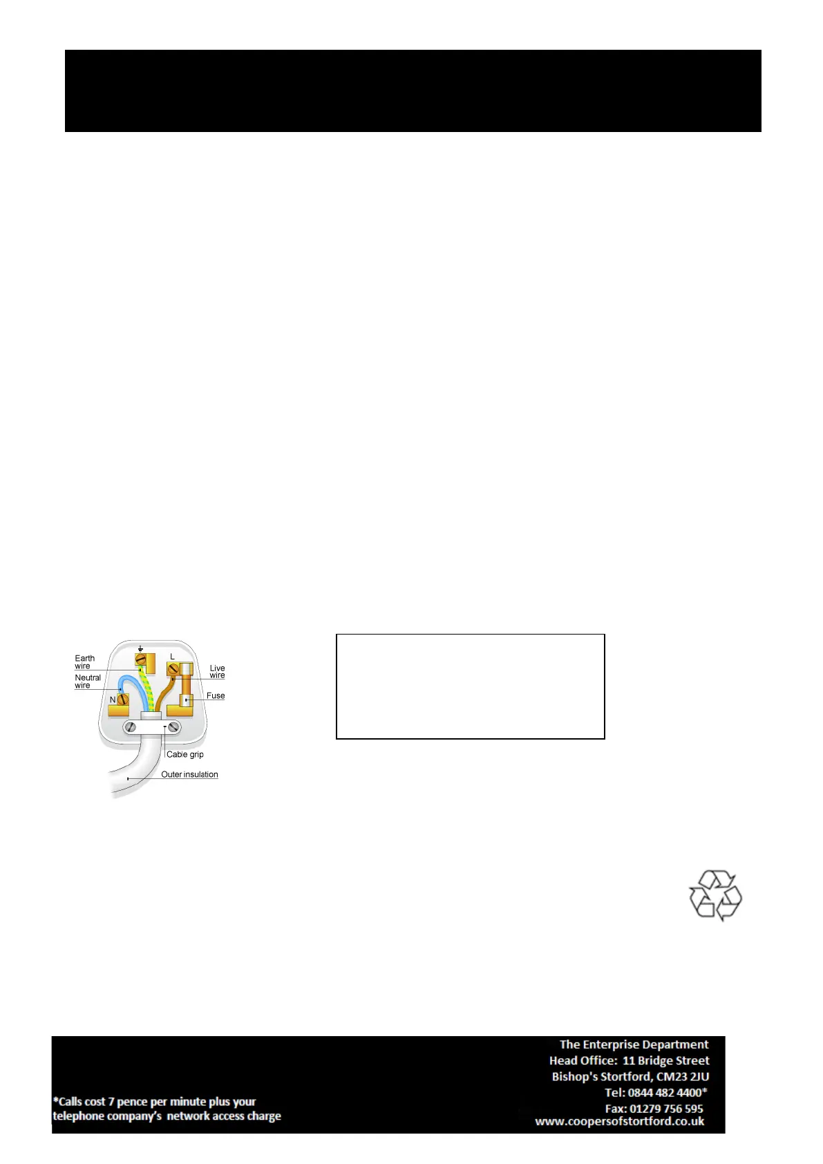 this cover must be re-fitted after changing the fuse. If the fuse cover is lost or damaged the plug must not be