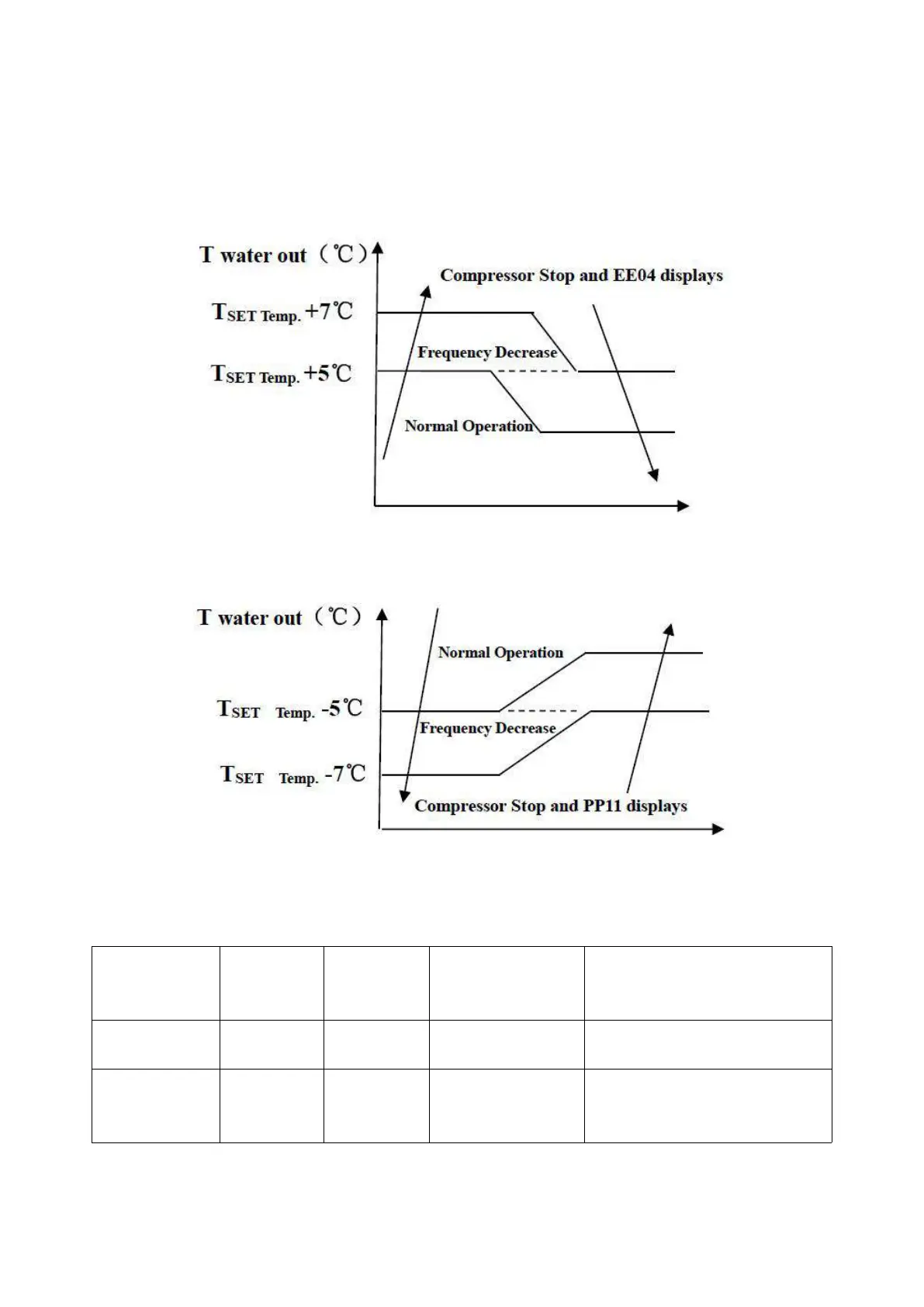 1. En mode chauffage, si la température de sortie d'eau est supérieure à la température réglée de 7°C, le contrôleur
