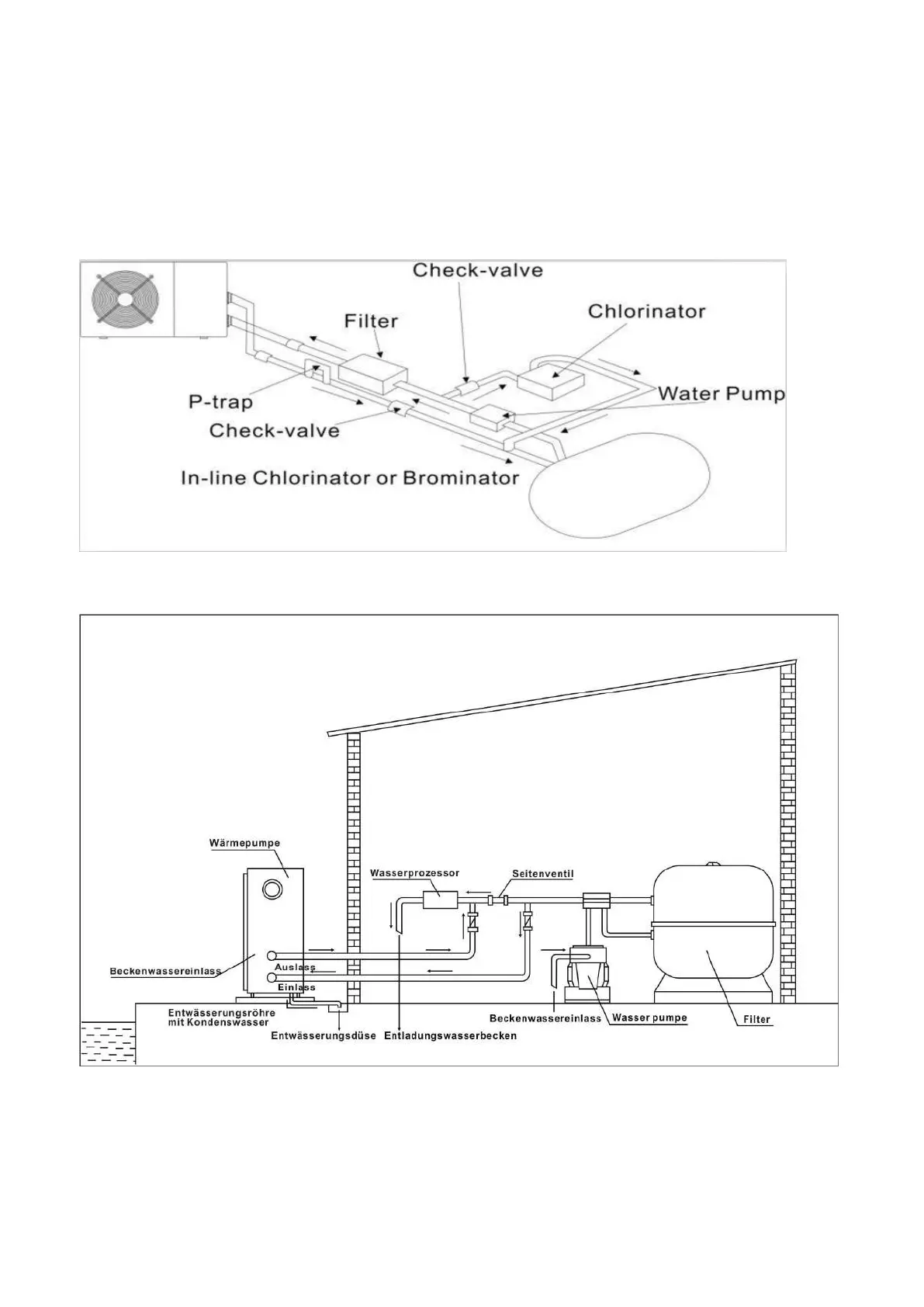der Wärmepumpe montiert werden. Ferner wird empfohlen, ein Rückschlagventil zu installieren, um eine
