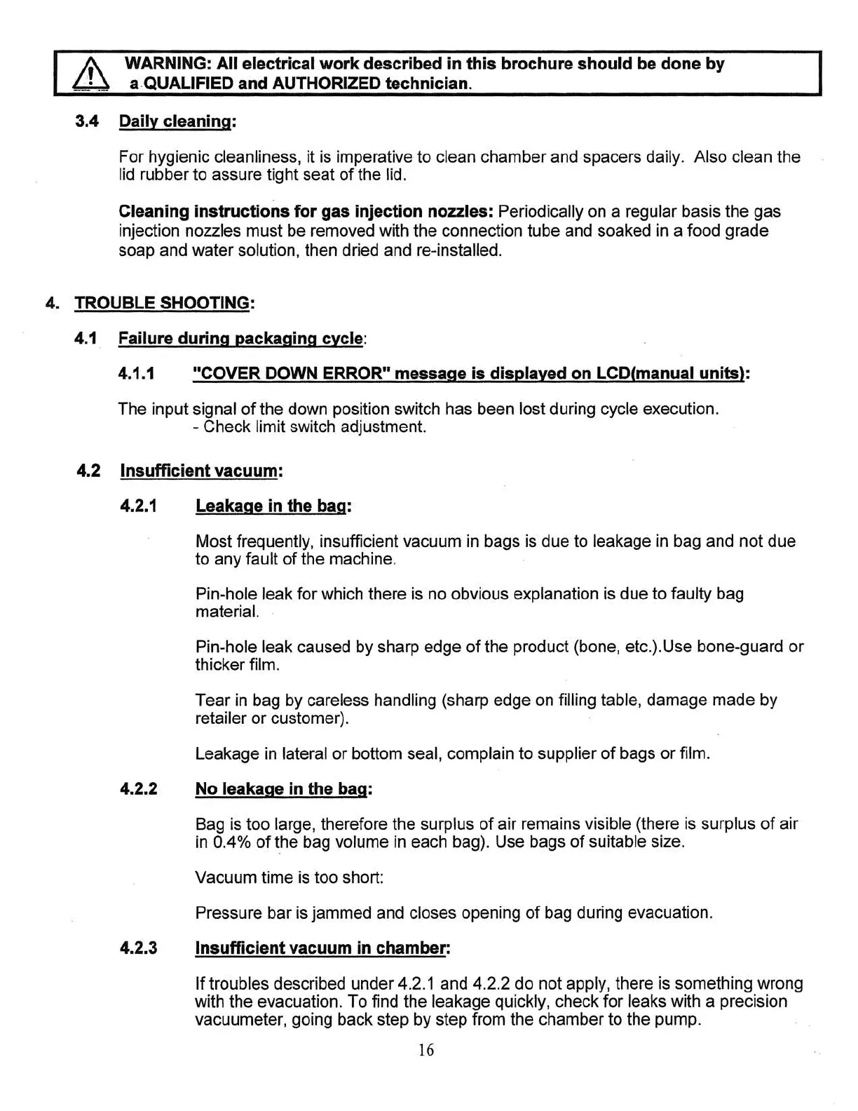 4.2 Insufficient vacuum: