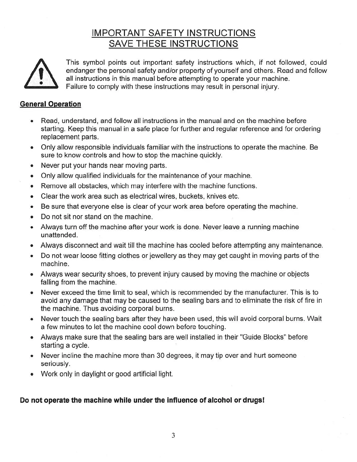 all instructions in this manual before attempting to operate your machine.