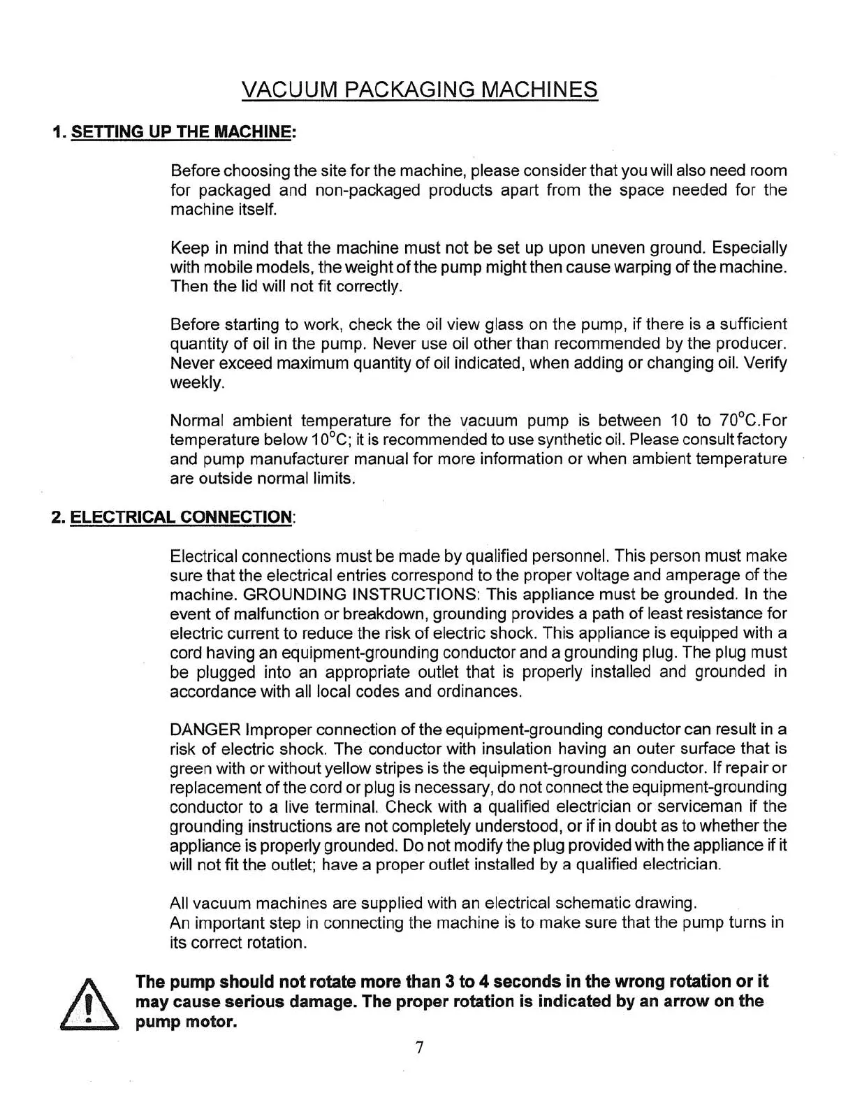 Normal ambient temperature for the vacuum pump is between 10 to 70°C.