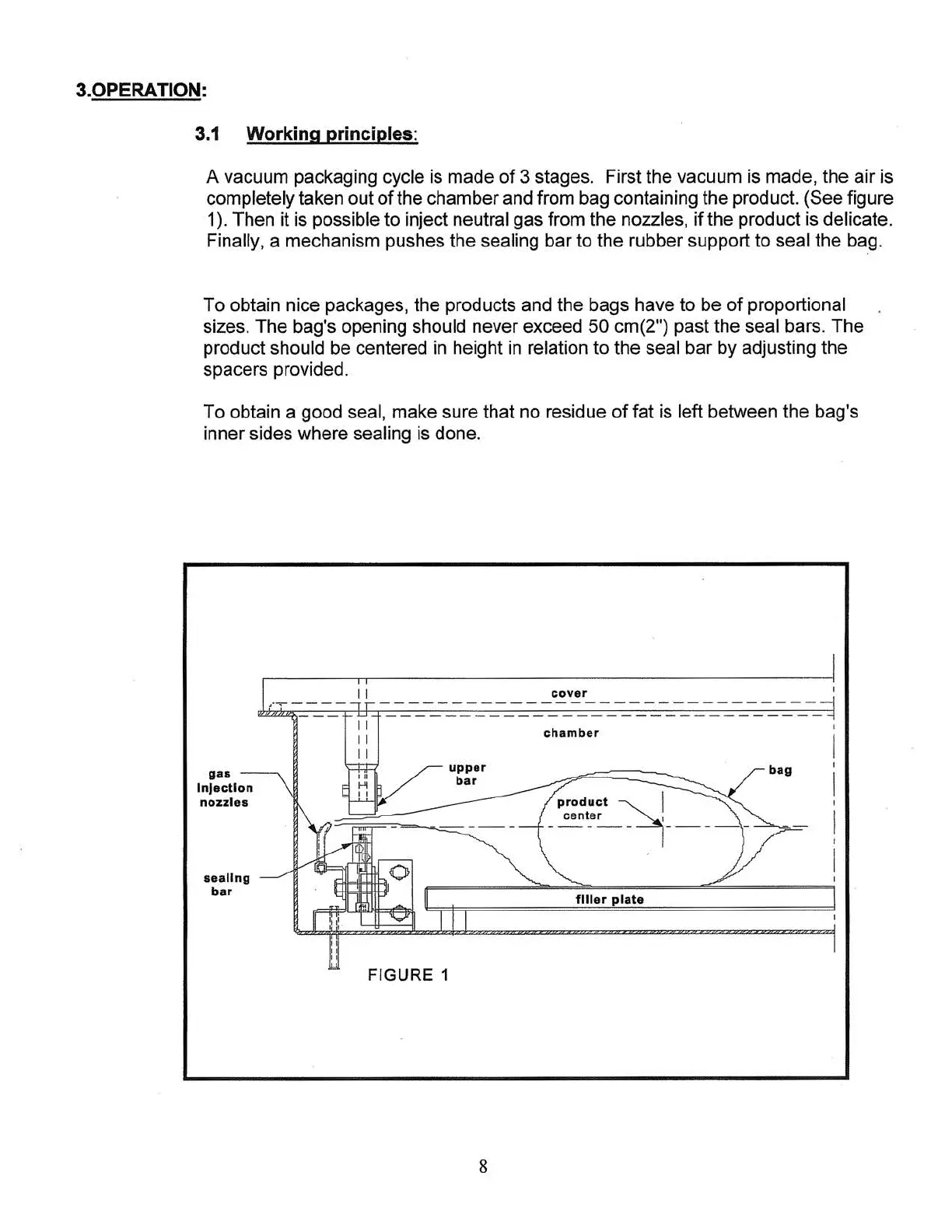 bag's opening should never exceed 50 cm(2") past the seal bars. The