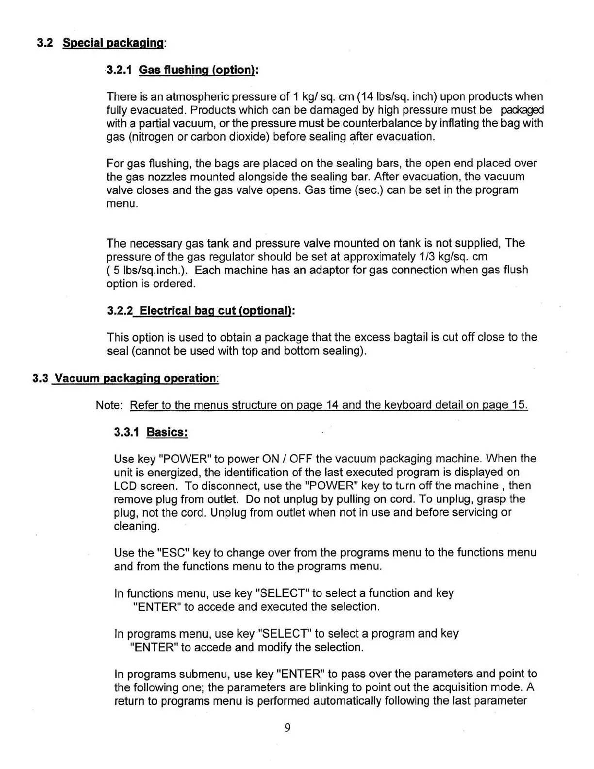the gas nozzles mounted alongside the sealing bar. After evacuation, the vacuum
