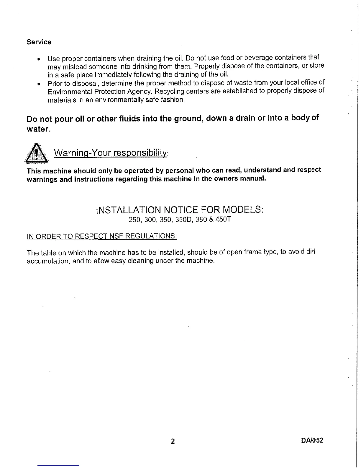 Berkel 350 - Installation Notice; Service