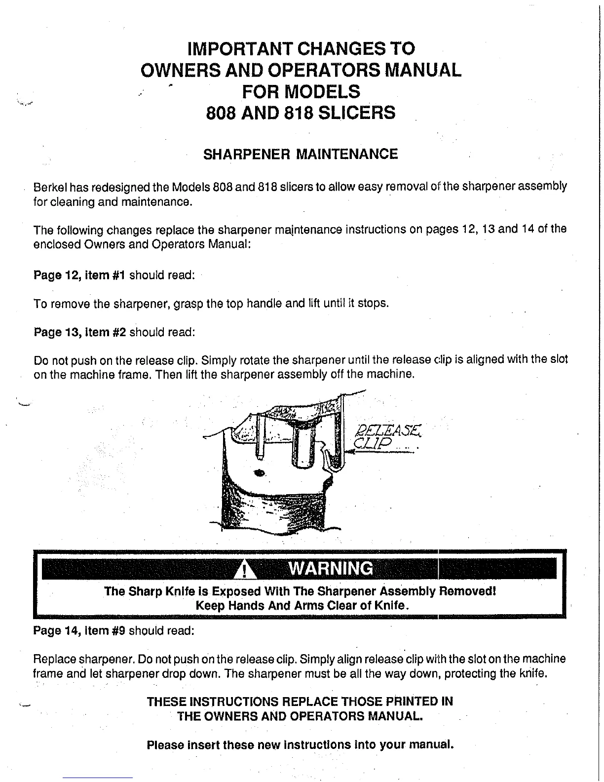 Berkel 808 - Changes to Manual