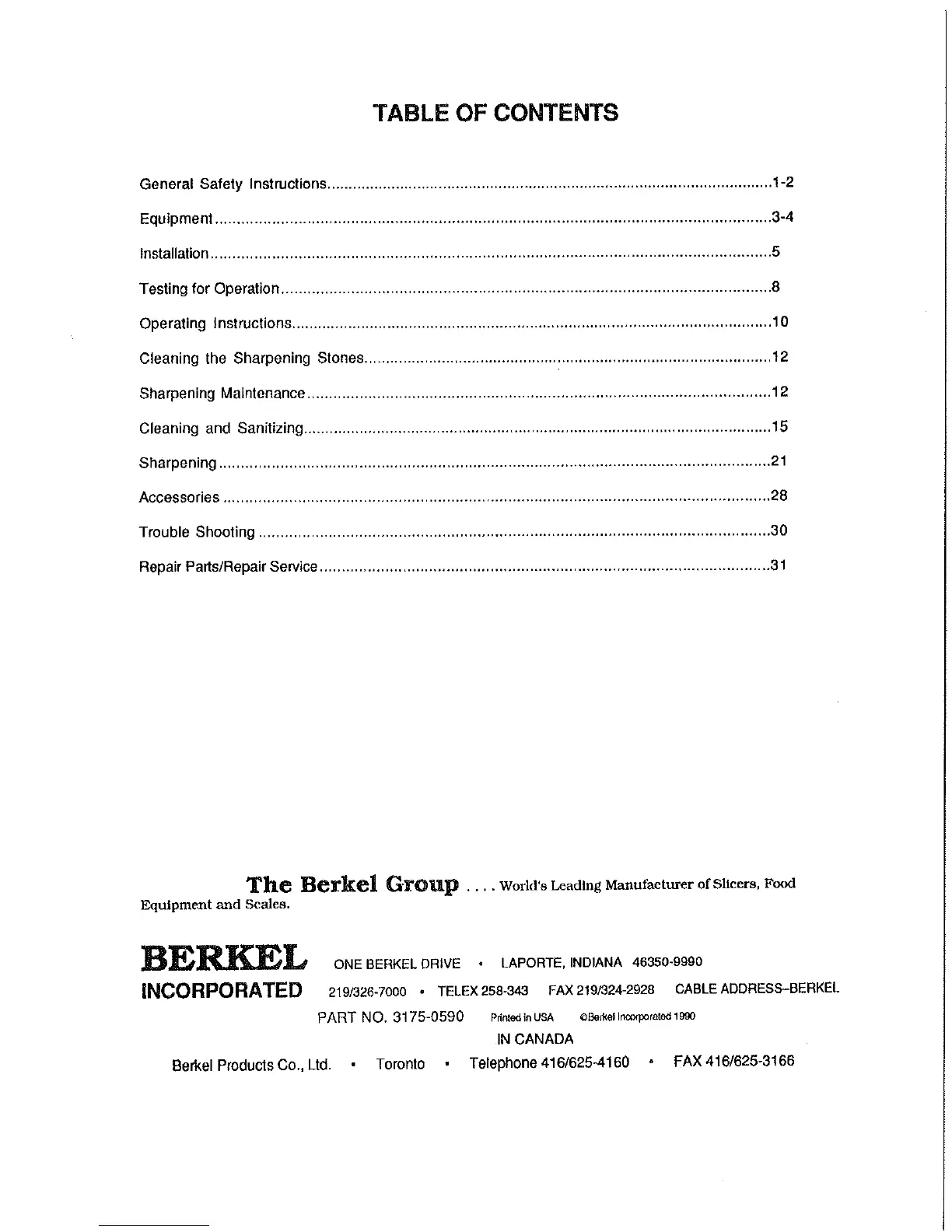 Berkel 808 - Table of Contents